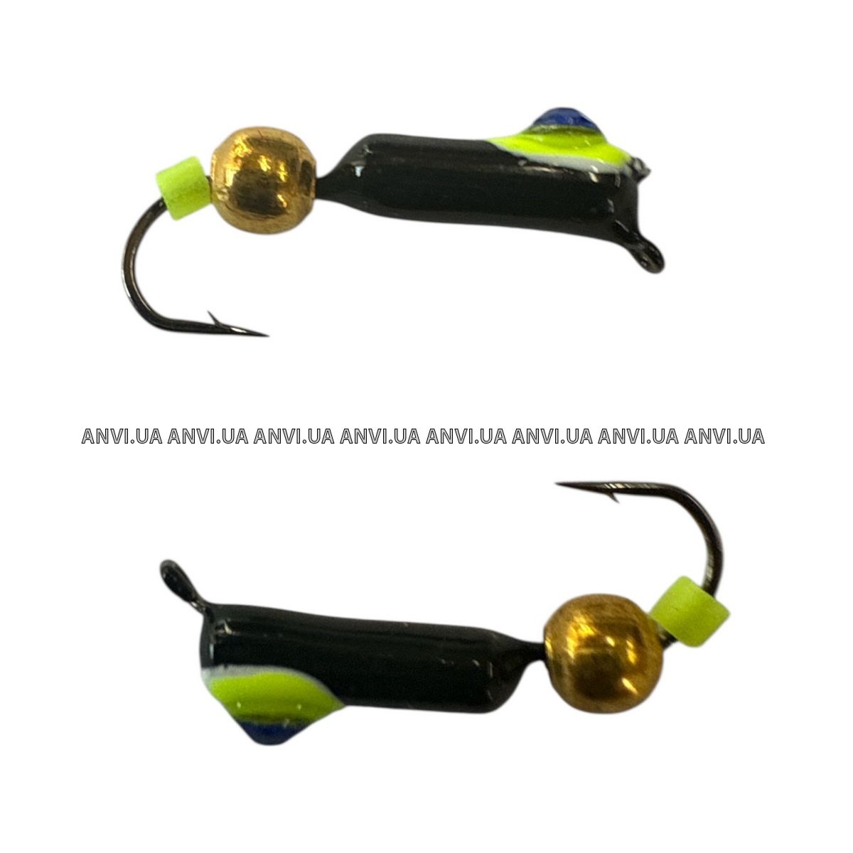 Мормышка Вольфрамовая "Латышка" Гвоздик - Кошачий глаз с шариком золото - Ø2,1 мм - 0,5 г - Черный - Латвия