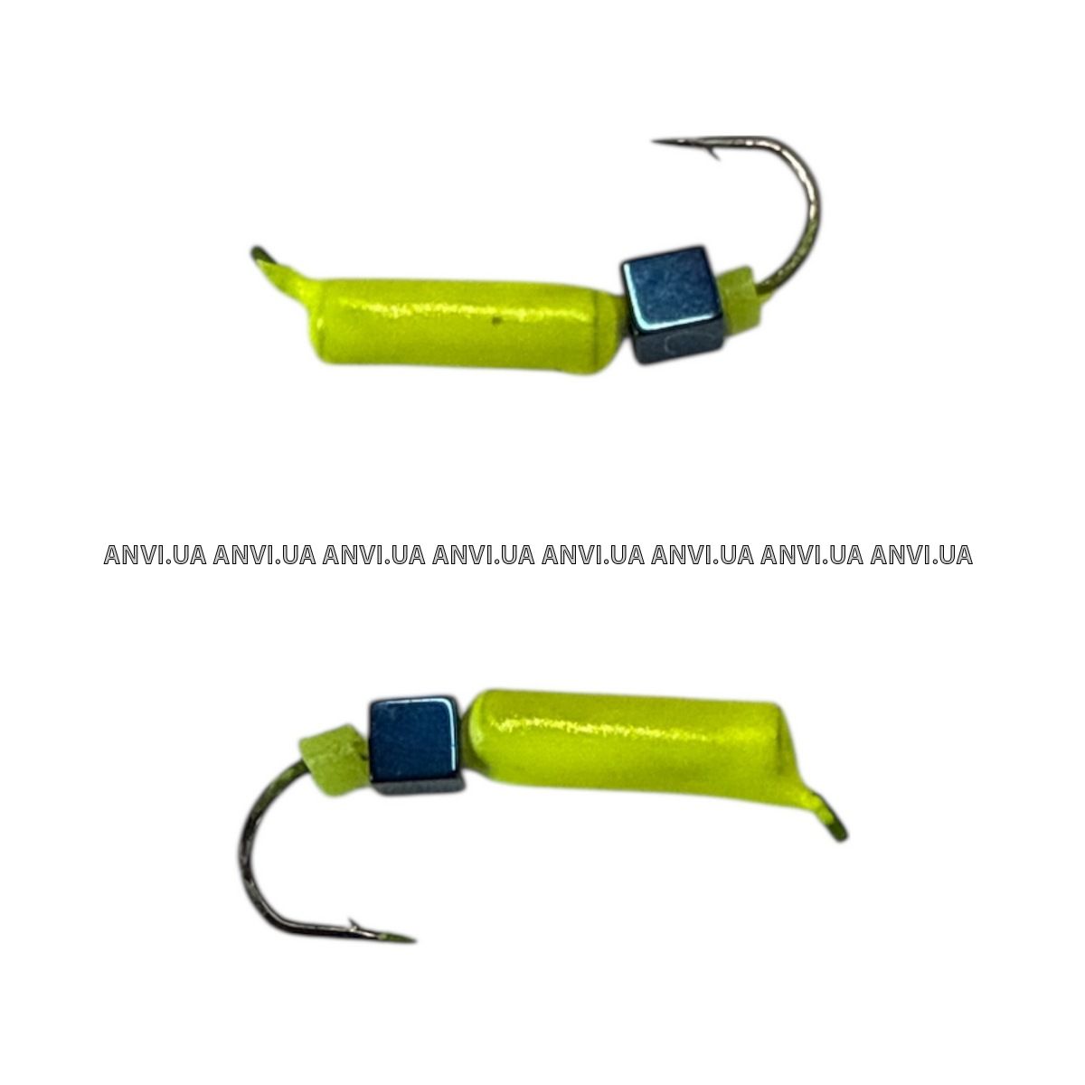 Мормышка Вольфрамовая "Латышка" Гвоздик - С кубиком голубой - Ø2,2 мм - 0,5 г - Желтый - Латвия
