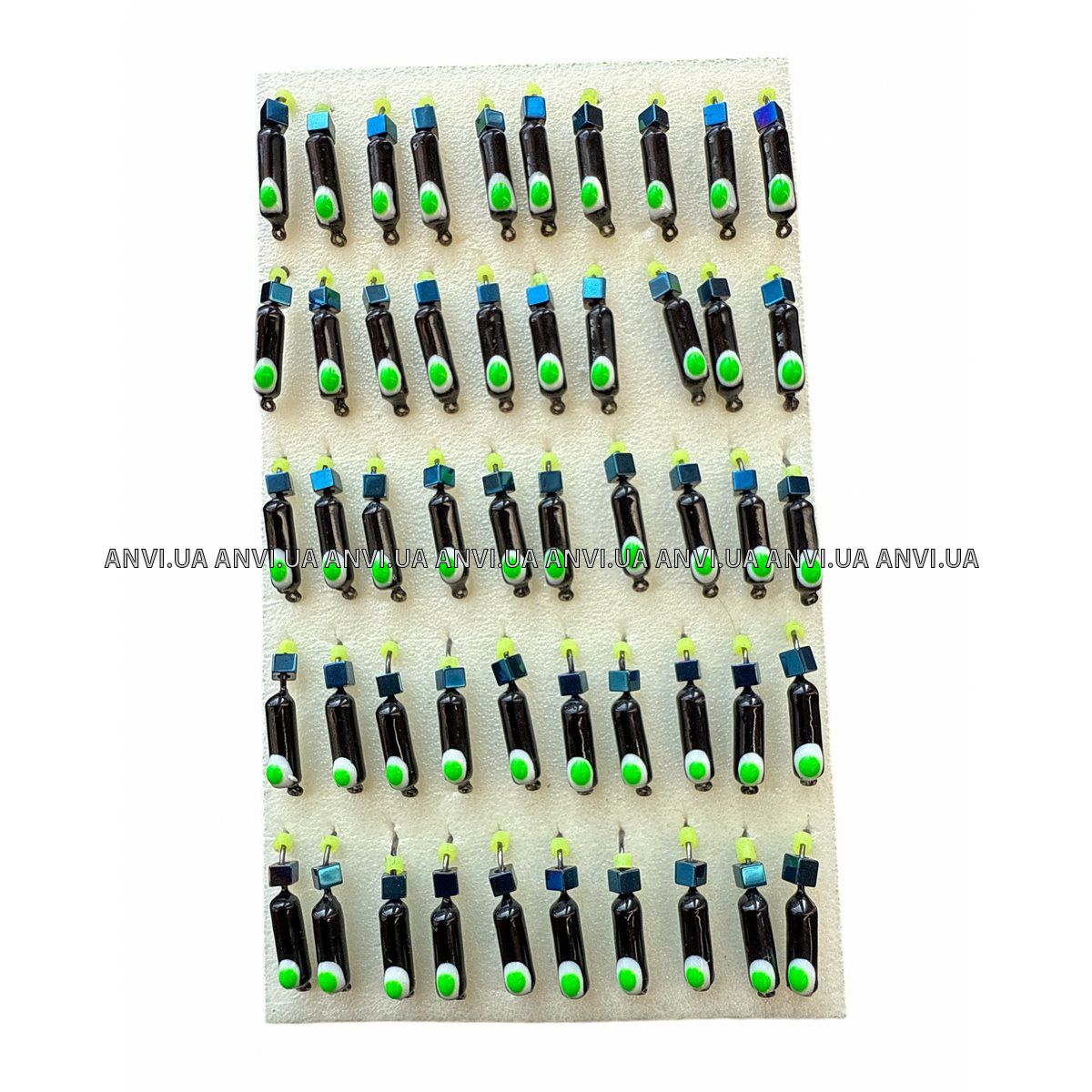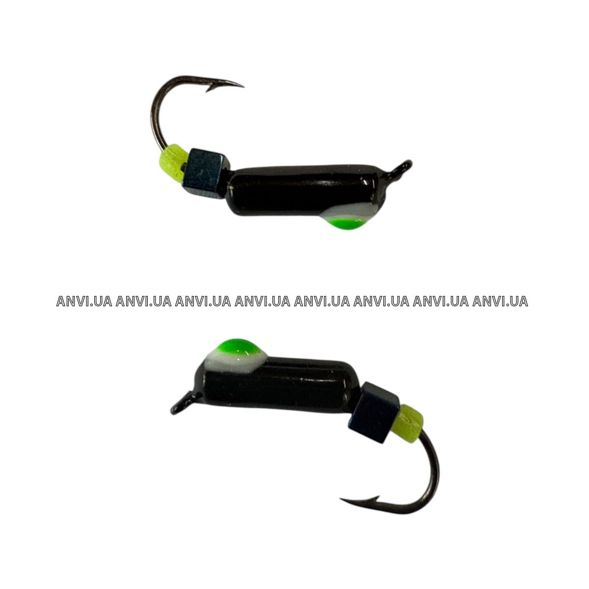 Мормышка Вольфрамовая "Латышка" Гвоздик - С кубиком голубой - Ø2,7 мм - 0,8 г - Чёрный с бело-зеленой точкой - Латвия