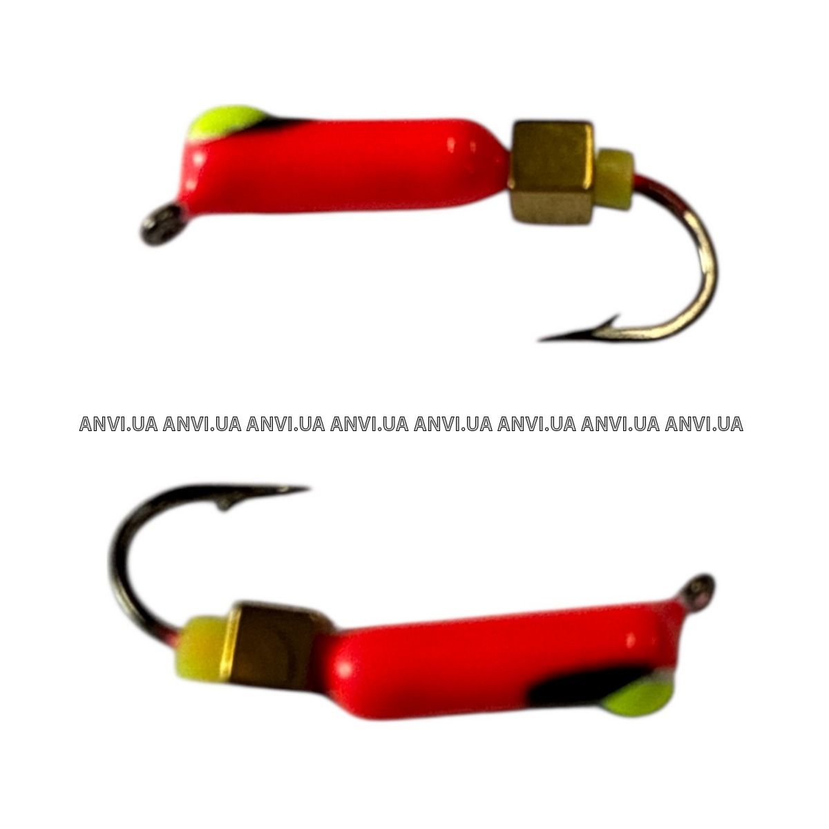 Мормышка Вольфрамовая "Латышка" Гвоздик - С кубиком золото - Ø2,3 мм - 0,5 г - Красный с черно-желтой точкой - Латвия