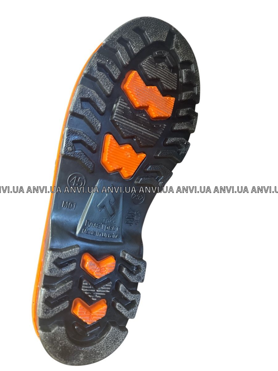Щільна рифлена підошва виконана методом трехкомпонентного лиття - із застосуванням третього додаткового проміжного шару з спіненого ПВХ, що надає взуття високі амортизуючі, теплозахисні та антистатичні властивості, забезпечуючи комфортність при ходьбі по будь-якій поверхні.